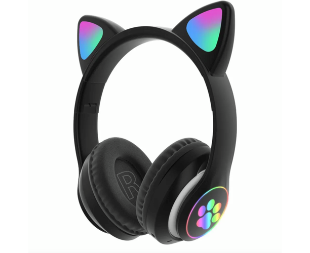 Беспроводные Bluetooth наушники STN-28 с кошачьими Светящимися ушками, черный